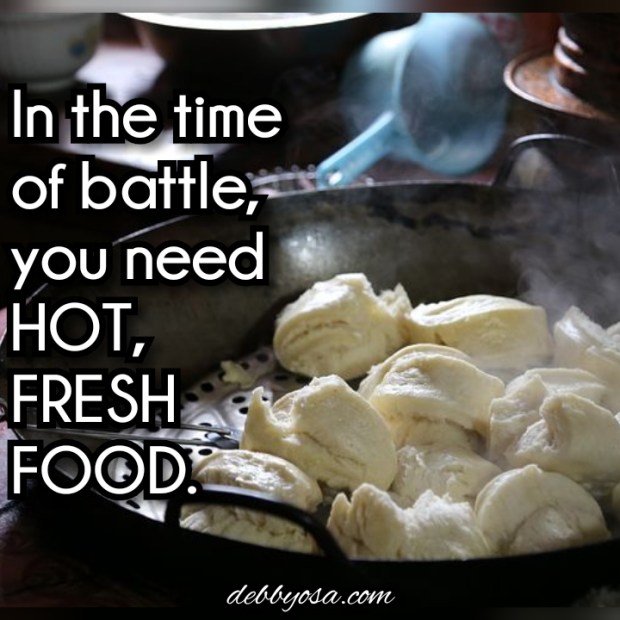 And eat a lot because, in these last days, the journey and the battle will be too great for little bites to sustain you.