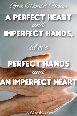 Someone once said, “God would rather you have a perfect heart and imperfect hands, than perfect hands and an imperfect heart.” I agree.