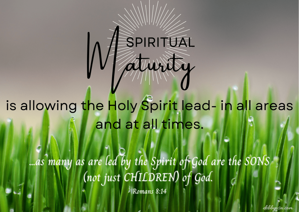 Remember, it is those who are led by the Spirit of God that are the SONS of God – not just CHILDREN of God. Therefore, spiritual maturity is recognising and allowing the Spirit lead – in all areas and at all times.